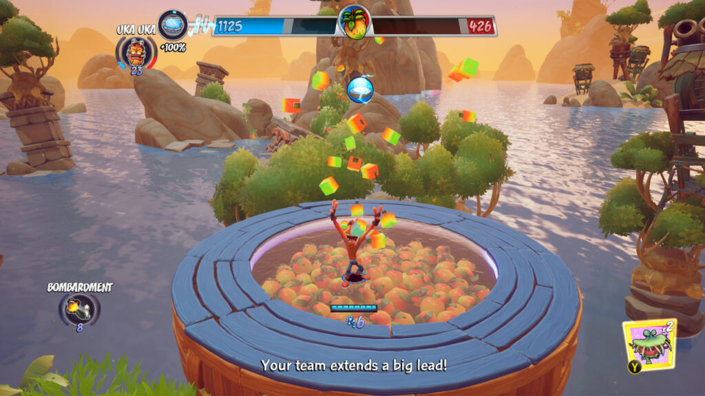 •بازی یک رقابت تیمی 4 در برابر 4 است که هر تیم باید میوه‌های Wumpa را جمع‌آوری و ذخیره کند.