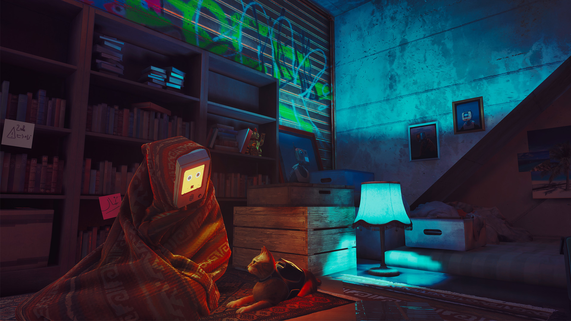 •بازی Stray یک تجربه ماجراجویی تکنفره با محوریت گربهای ولگرد است که در دنیای سایبرپانک پر از رباتها و محیطهای شهری زیرزمینی جریان دارد.